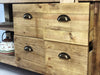 Mobile RUSTICO / INDUSTRIAL in legno massello (anche da riciclo) con due morse e quattro cassetti, con specchiera opzionale.