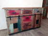 Credenza in stile Industrial, in legno massello (anche da riciclo), tra i quali: castagno, frassino, abete, olmo e in base alla nostra disponibilità.