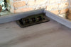 In questo modello realizzato su misura per un nostro cliente abbiamo utilizzato per le parti in legno dell'abete, che ben si adatta anche ad ambienti esterni come verande o portici, ed è stato rifinito con un leggero effetto rovinato e successivamente trattato con impregnante all'acqua grigio-cemento (codice GA vedi tabella colori), un prodotto realizzato con resine naturali e atossico che da alle superfici un effetto satinato.