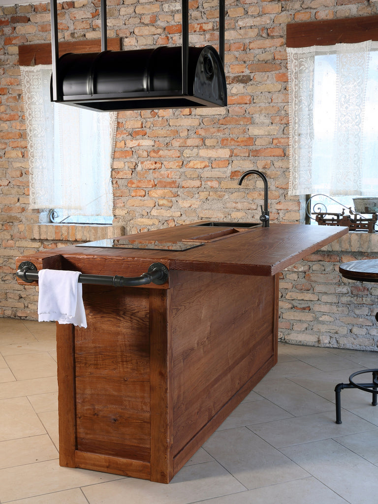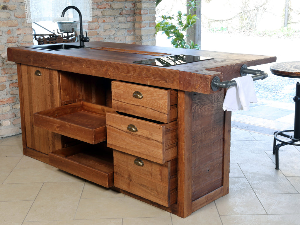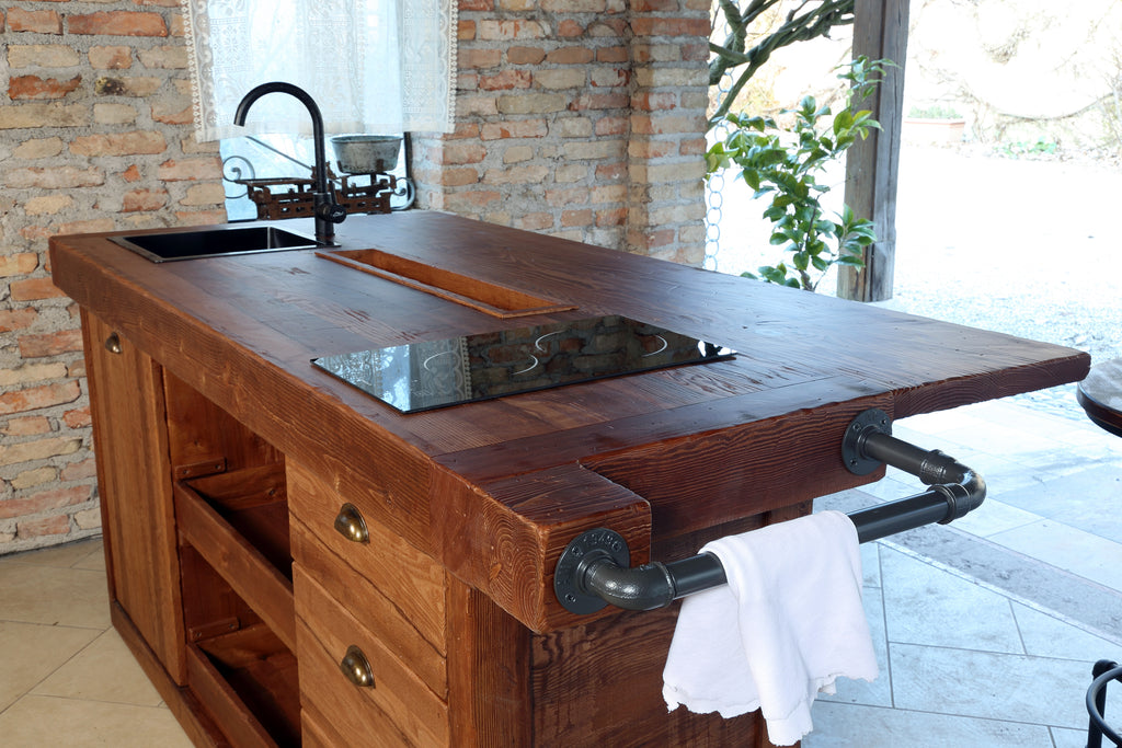 Isola cucina in stile Industrial interamente in legno massello.