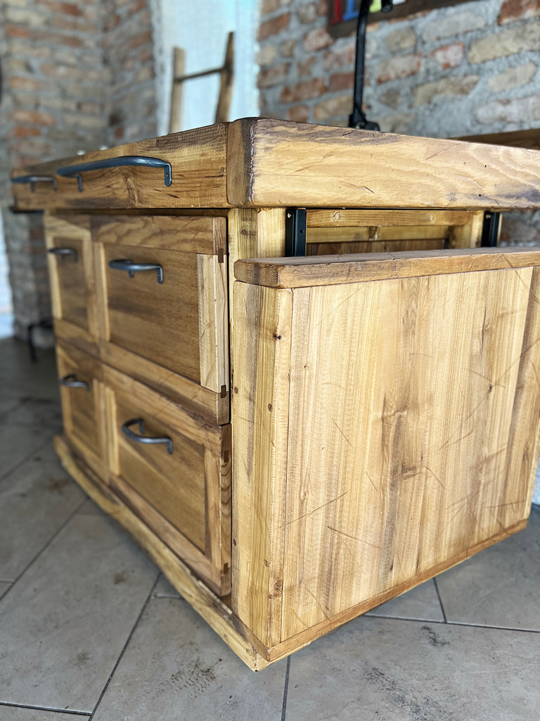 Possiamo arredare con stile ogni angolo della tua casa o attività commerciale, con tavoli e tavolini su misura di tutte le forme e grandezze, cucine componibili e isole cucina (interamente in legno massello), camere e camerette, banchi "veri" da lavoro per Falegname e banchi in stile Falegname per arredo su misura, ideali per bagno, cucina, taverna, soggiorno, sala da pranzo, oppure per dare un tocco di originalità a locali e negozi, inoltre realizziamo madie, credenze, mobili soggiorno e porta TV, complementi d'arredo come piantane e abasciur (utilizzando anche vecchi oggetti vintage e materiali di riciclo), avrete già capito che non c'è limite a quello che possiamo creare, ogni articolo è unico, non ne troverai mai!! Uno di uguale, sarà il frutto della tua creatività e della nostra competenza nel produrlo.