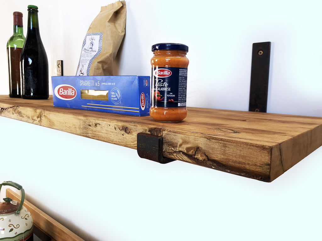 👉 Mensola OPZIONALE in stile INDUSTRIAL in legno massello e supporti in ferro, lunghezza variabile 70/120x25 cm, spessore 4 cm.