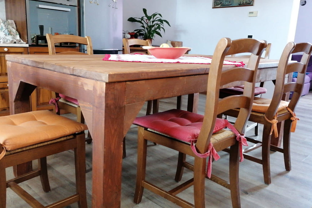 Tavolo rustico in legno massello di ebete per cucina e sala da pranzo.