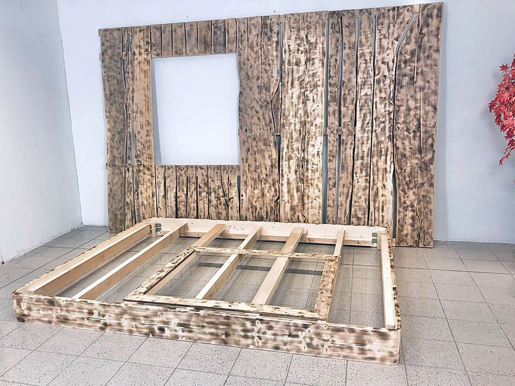 A Turkish double bed, with a wall-mounted installation of variable dimensions, depending on the height and width of the wall to be fitted, all made and customized by the customer, from the color finishes to the type of wood, we can use solid chestnut, ash, elm, fir or cedar wood, precious materials that will take shape in the expert hands of our carpenters.