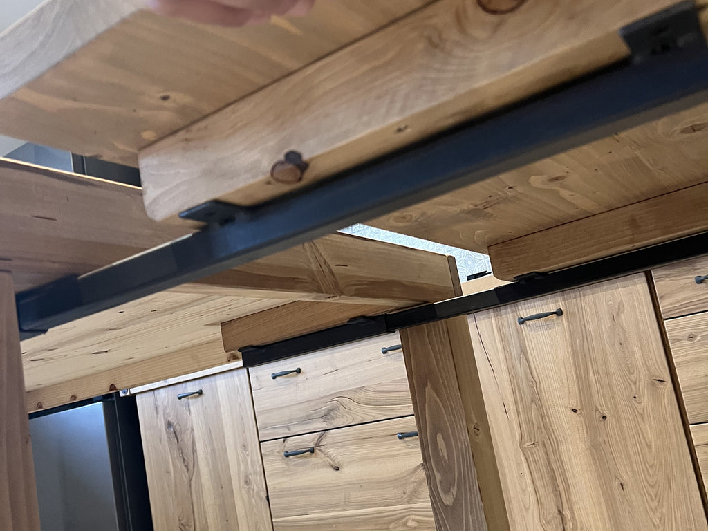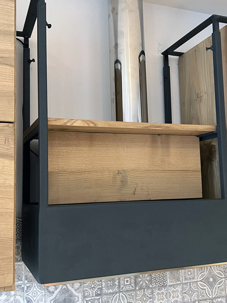 Quality guides, hinges and accessories integrate perfectly with our products, to name just a few we find, BLUM, SALICE, VEVOR, HETTICH, these are just some of the brands we turn to to guarantee the customer a functional and long-lasting piece of furniture and to us peace of mind, knowing that we are delivering a product free of any kind of problems into the hands of our customers. We are also artists in the working of iron, some handles, shelf supports, grates, tea towel holders, metal structures such as legs for tables and counters, kappa ceiling extractor supports and much more, are of our production and you will not find them in the shop near your house. We also produce curious and bizarre things in Industrial style, using and recycling old and vintage objects.