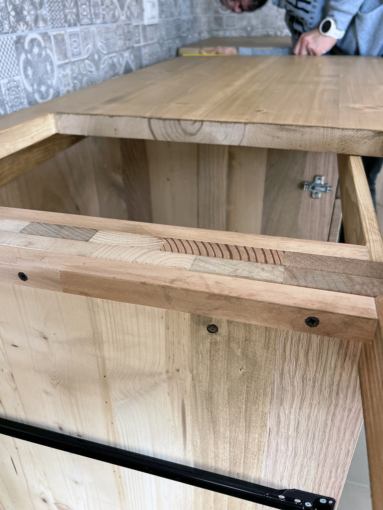 Each of our kitchens, sideboards, carpenter's benches, tables and anything else is tailor-made for the customer and will NEVER be!! Same as another. Basically nothing is done in series.