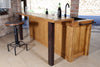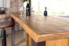 Industrial style kitchen island made entirely of solid wood with a raised top.