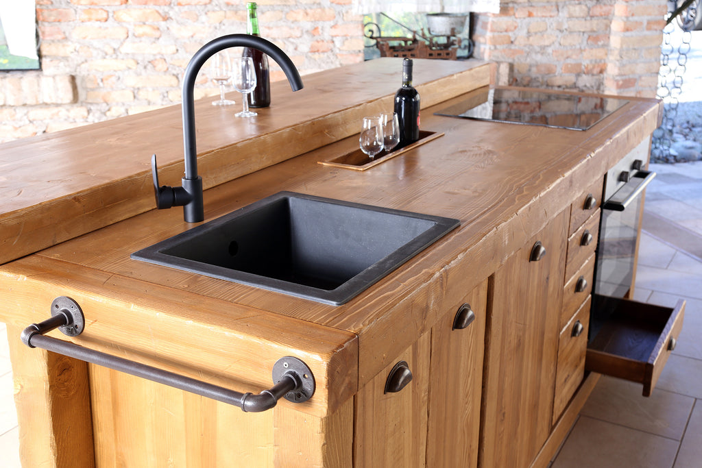 Quality guides, hinges and accessories integrate perfectly with our products, to name just a few we find, BLUM, SALICE, VEVOR, HETTICH, these are just some of the brands we turn to to guarantee the customer a functional and long-lasting piece of furniture and to us peace of mind, knowing that we are delivering a product free of any kind of problems into the hands of our customers. We are also artists in the working of iron, some handles, shelf supports, grates, tea towel holders, metal structures such as legs for tables and counters, kappa ceiling extractor supports and much more, are of our production and you will not find them in the shop near your house. We also produce curious and bizarre things in Industrial style, using and recycling old and vintage objects.
